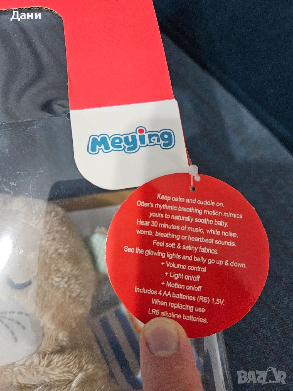 Играчката работи с батерии, скрити безопасно в отделение със защита.