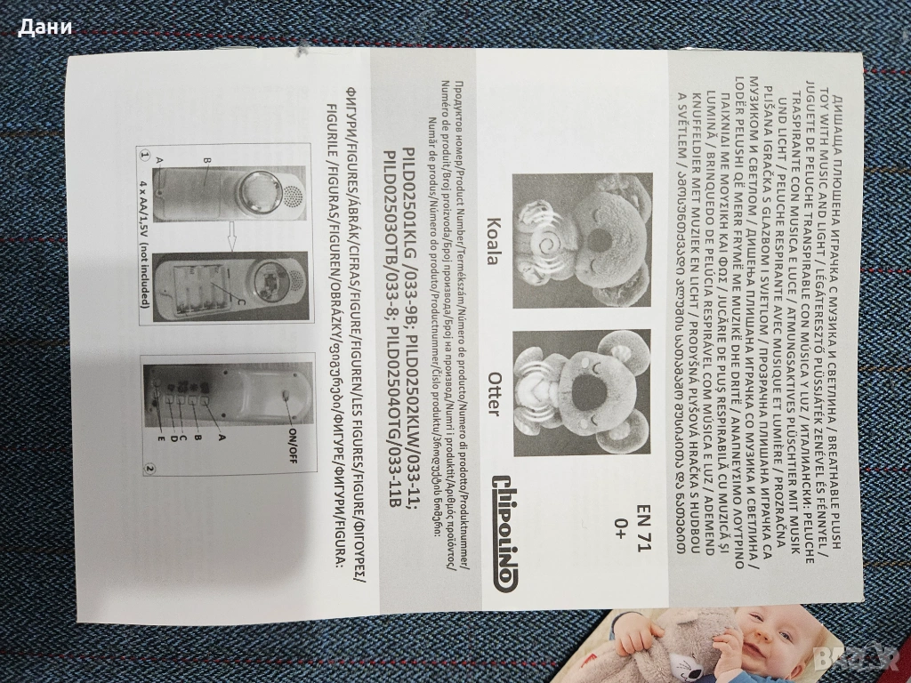 Чисто НОВА Дишаща плюшена играчка Chipolino с музика и светлина, видра