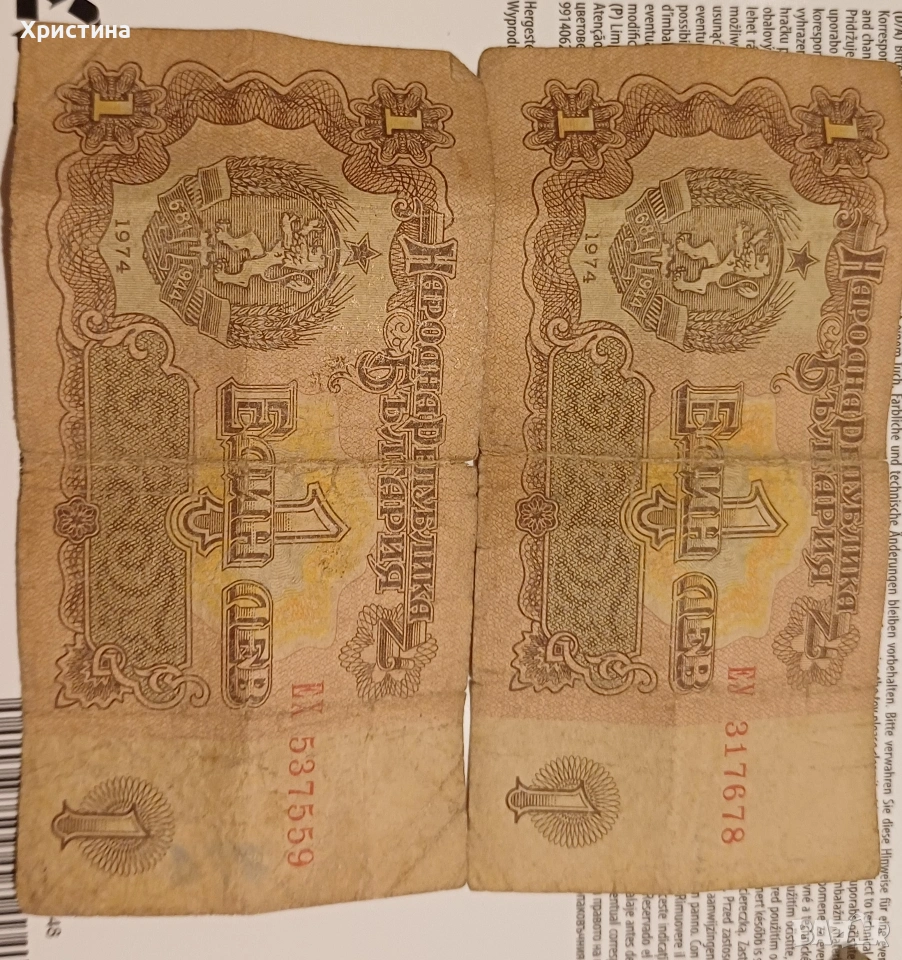 1 лв от 1974г, снимка 1 - Колекции - 53700310 1 лв от 1974г, снимка 2 - Колекции - 53700310 1/2