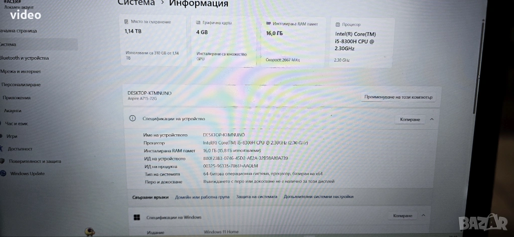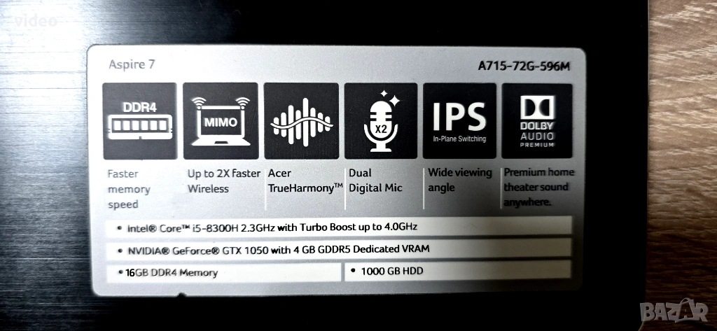 Acer Aspire 7 | i5-8300H | 16GB RAM | GTX 1050 4GB | 16GB Ram като Нов