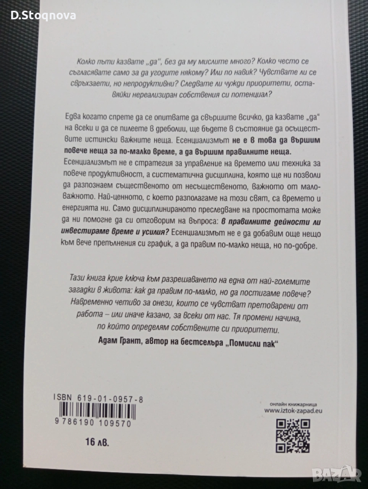 Продавам книгата - "Есенциализъм"-
