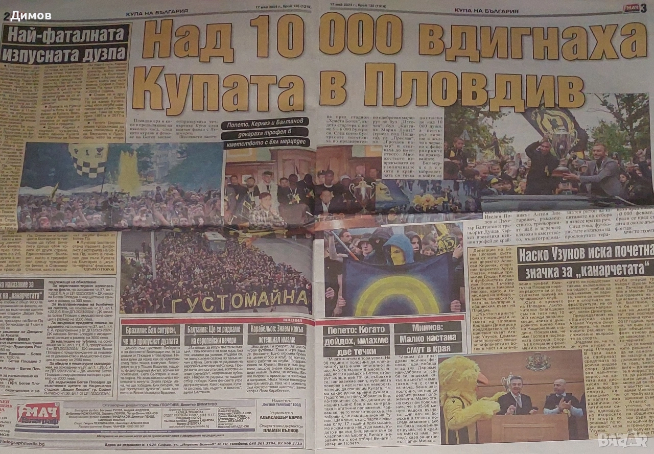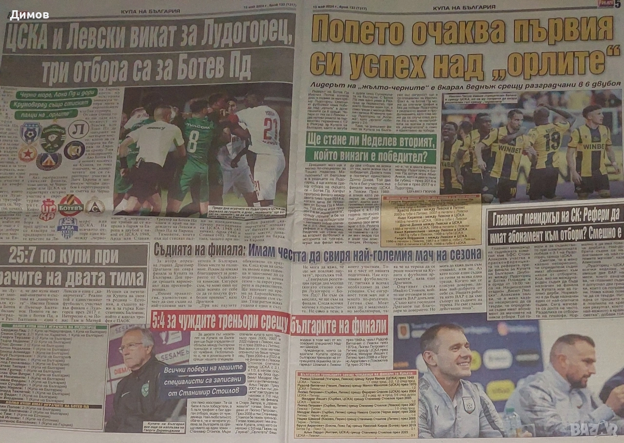 Стари вестници с множество материали и снимки около купата на Ботев Пловдив през 2024 година.