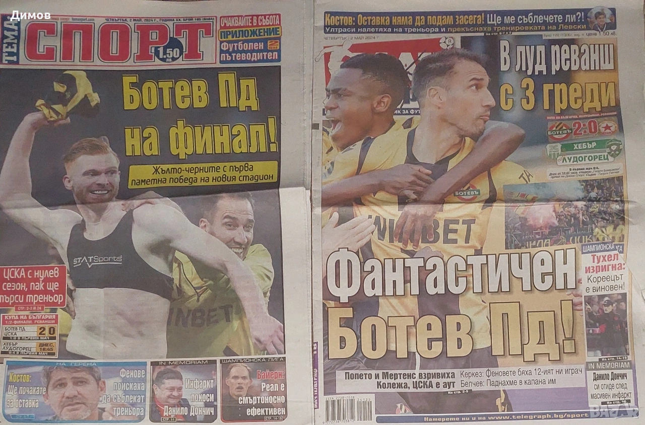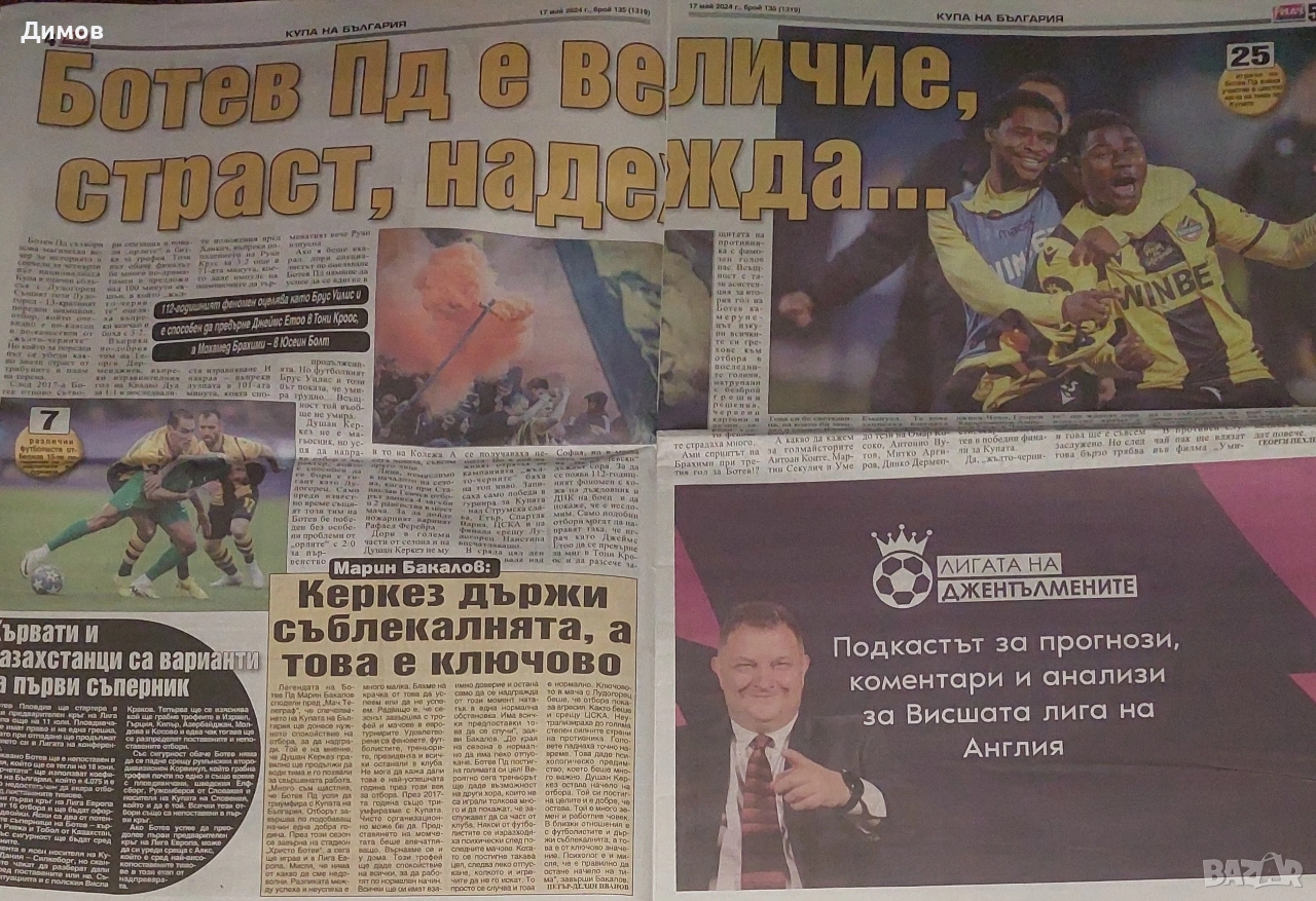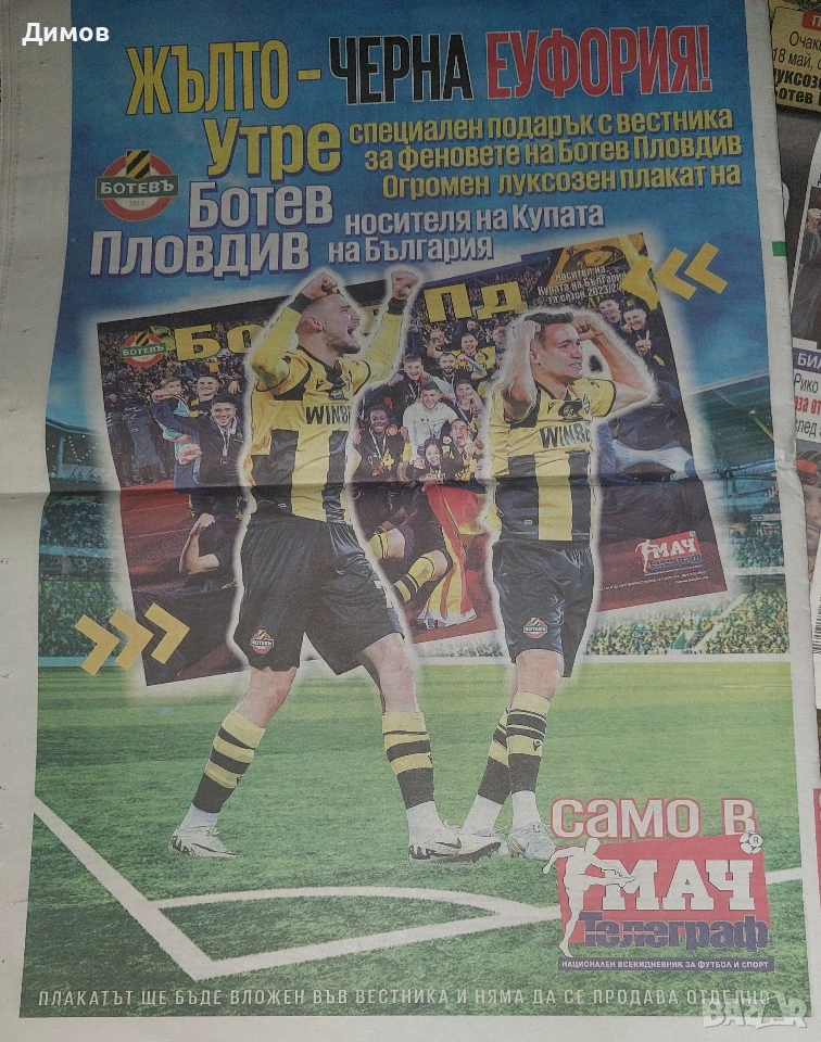 Вестници с публикации за Ботев Пловдив → Обява 53700406