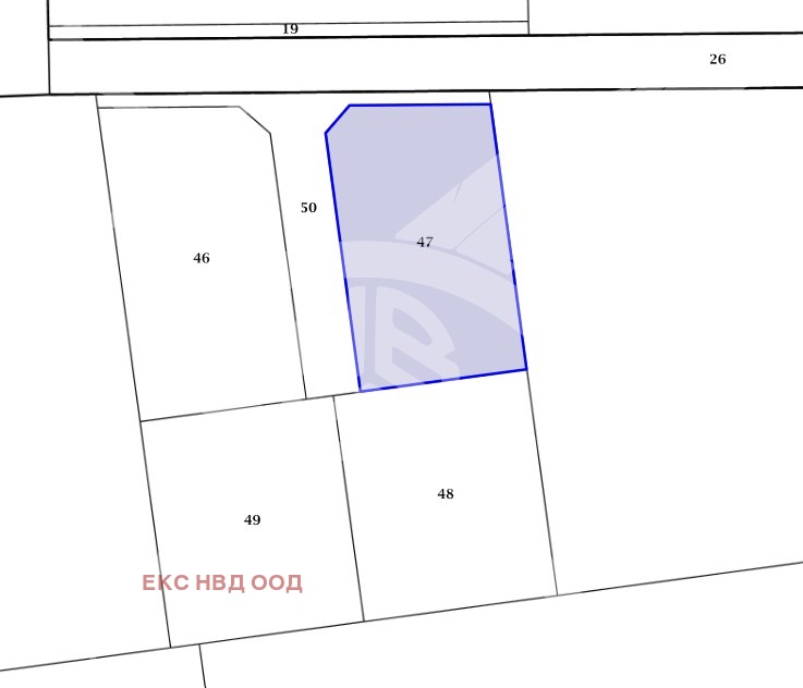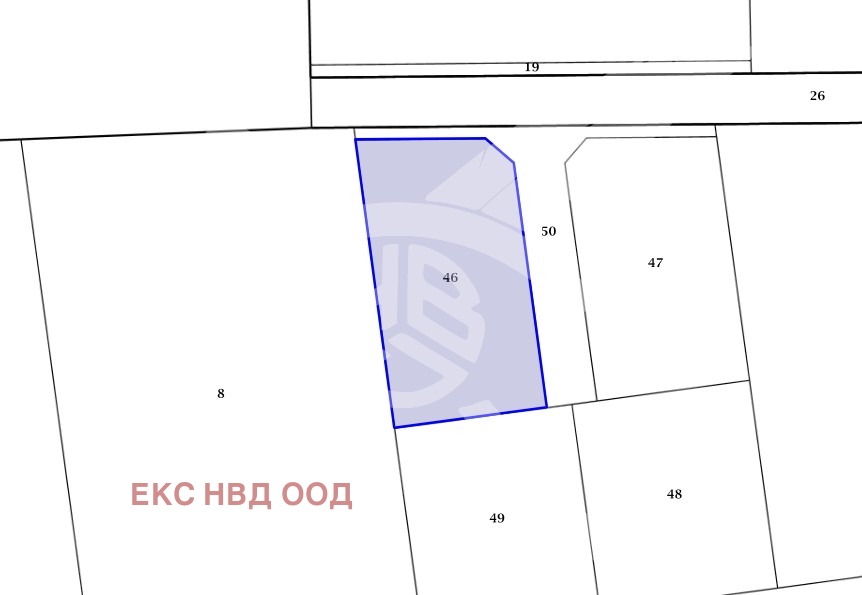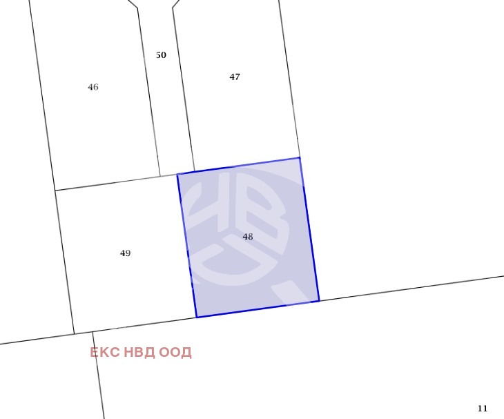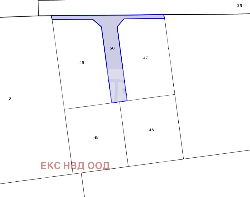 РАЗПРЕДЕЛЕНИЕ: Площта на парцелите е 46- 611 кв. м, 47 555кв. м, 48 534 кв. м, 49 534 кв. м, 50 266кв м.