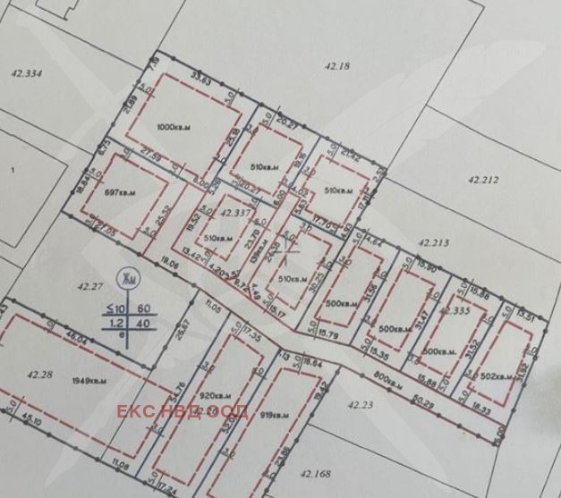 РАЗПРЕДЕЛЕНИЕ: Парцела разполага с площ от 550кв.м., от които 50кв. са предвидени за път.