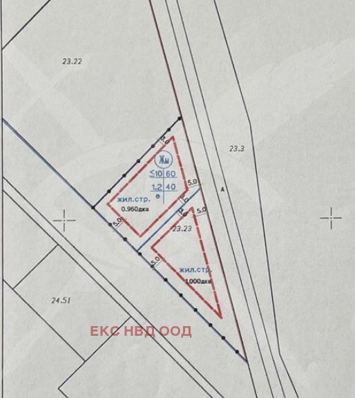 РАЗПРЕДЕЛЕНИЕ: Парцела разполага с площ от 960кв.м., в процедура, с ПУП.