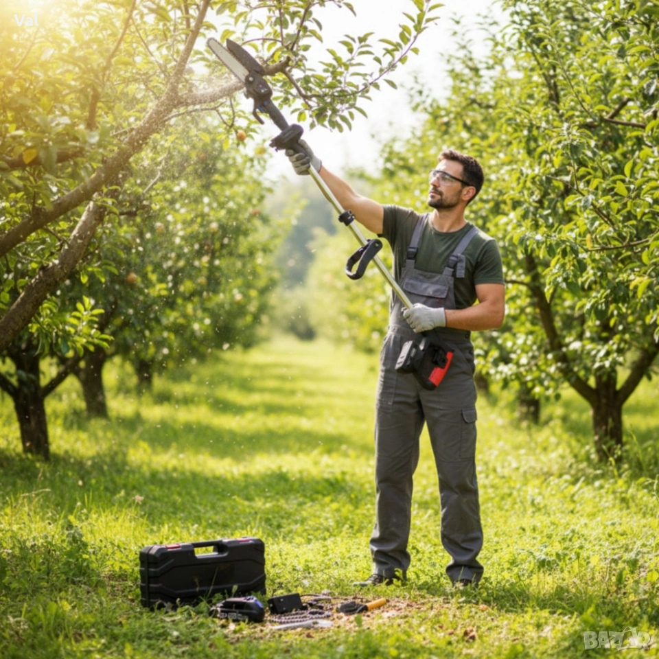 Тип продукт: Мини акумулаторен верижен трион + телескопичен удължителен прът;