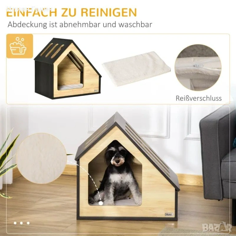 Кучешка къщичка Pawhut, вътрешна, с възглавница до 8 кг - 45.00 €.