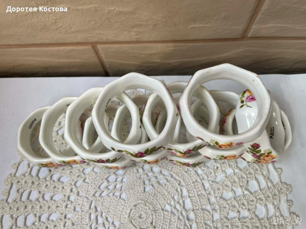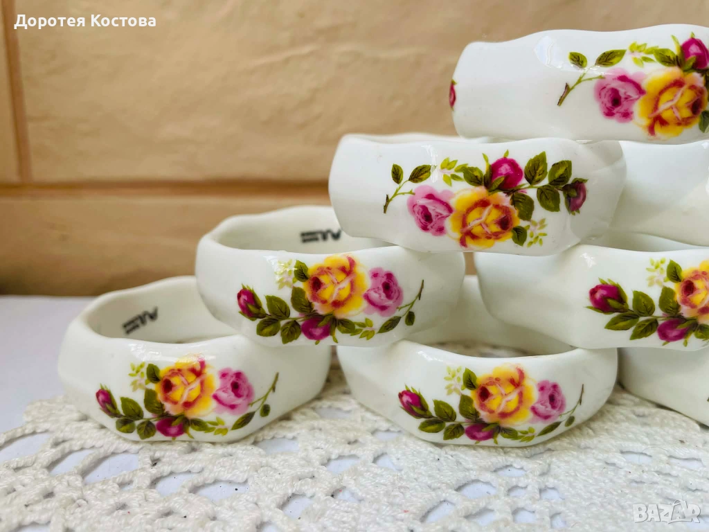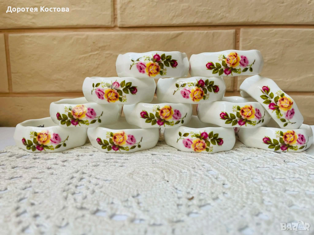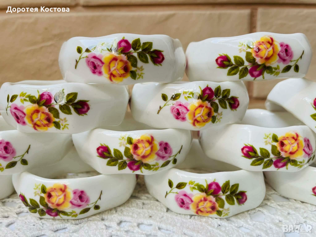 Красиви 12 пръстена от Англия от костен порцелан с рози → Обява 53701848