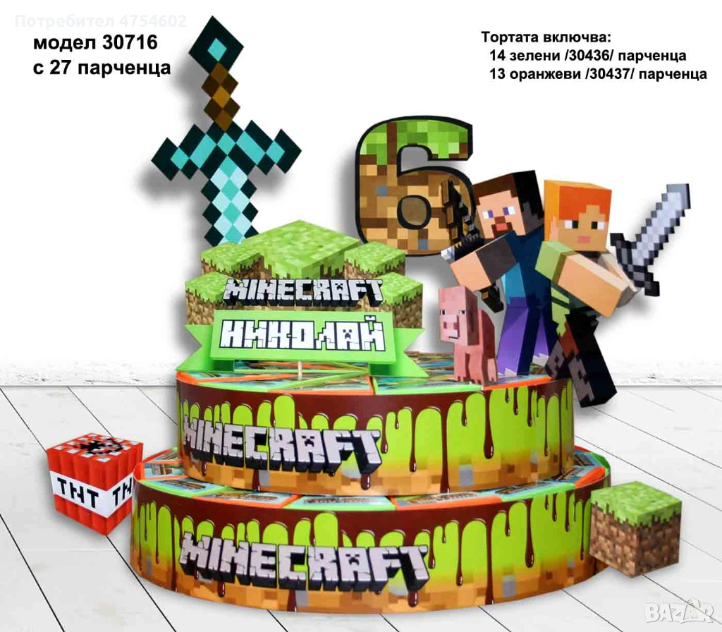 Картонена торта "Майнкрафт" → Обява 53702276