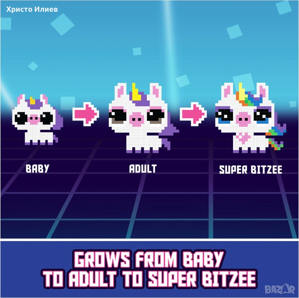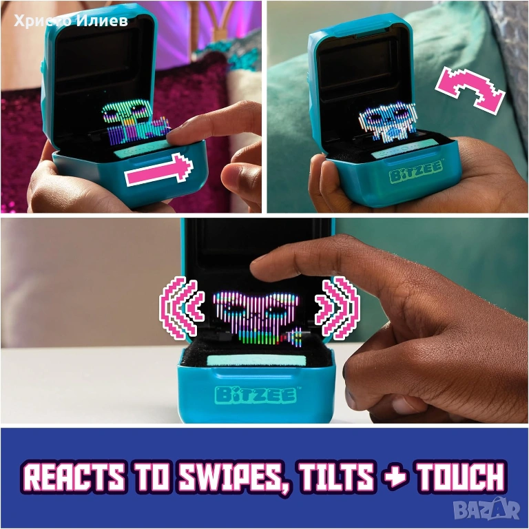 След успеха на първия Bitzee, Bitzee Magicals, новата версия на интерактивната играчка на Spin Master сега съдържа 20 магически същества, които да откриеш във всяка кутия чрез игра. Интерактивният Bitzee реагира на докосвания върху движещия се дисплей и движения като накланяне, повдигане и разклащане или плъзгане през лентата на тъчпада. Всяко Bitzee започва като бебе и се нуждае от любов и грижи, за да се развива. Колкото повече играеш и взаимодействаш с магическите същества Bitzee, толкова повече има за откриване. Можеш да ги храниш и да си играеш с тях, да ги люлееш да спят, да ги почистваш и да им даваш любов, като ги галиш. Можеш също така да направиш заклинание на твоя Bitzee за кратко време, като използваш функцията на магическата пръчица. Всеки Bitzee расте от бебе до възрастен и става Super Bitzee след още повече внимание и обич. Когато едно същество се развие в Super Bitzee получаваш скъпоценен камък, който трябва да бъде счупен, за да откриеш следващия магически Bitzee. Освен това с всеки Super Bitzee се отключва мини игра, чрез която можеш да спечелиш магически отвари, за да промениш завинаги цвета на магическите същества. Множеството опции за игра и взаимодействие правят Bitzee най-доброто забавление. Компактният, лесен за докосване дигитален домашен любимец може да бъде носен навсякъде.