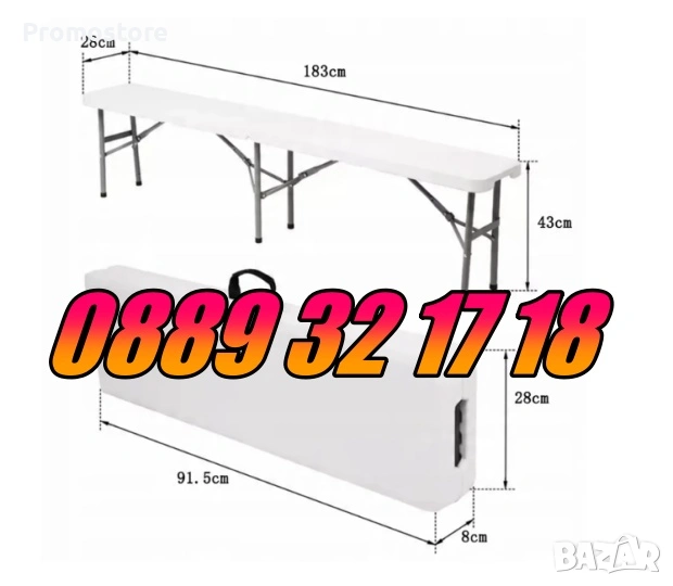 Сгъваема пейка за кетъринг 180 cм за 4 човека