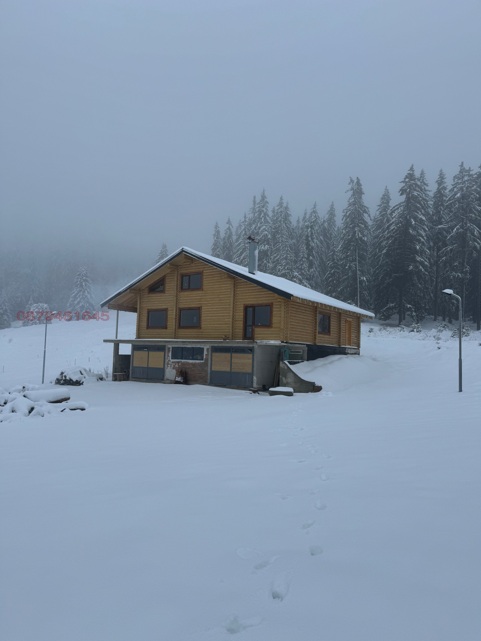 Самостоятелна къща с 3.5 дка. парцел. Ток, вода и канализация свързани. Уникална гледка с южно изложение. Обзаведена. Коментар на цената. Разпределение - партер гаражи 2 бр., сервизно помещение. Първи етаж - коридор с вътрешно стълбище към сервизно помещение, гаражи и тавански стаи. Самостоятелна баня, хол с преход към кухня, спалня и спа зона с втора баня. Втори етаж - две тавански стаи с голямо предверие.