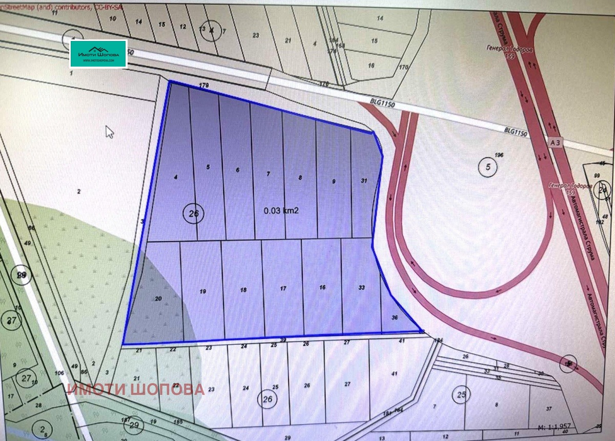Агенция за недвижими ИМОТИ ШОПОВА Ви предлага окрупнени земеделски земи за продажба на детелината на АМ Струма, село Ново Кономлади, община Петрич. Поземлените имоти са с обща площ 31 413 кв.м., с лице 160 метра на асфалтовия път които води към село Генерал Тодоров, с лице на полски път. В близост до имотите има трафопост и изграден промишлен имот. Имотите са подходящи за изграждането на логистичен център, автосервиз, бензиностанция. складова база.