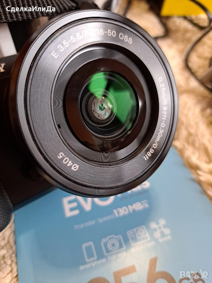 Пълен комплект с прилежащия обектив. Плюс зарядно и карта памет Samsung EvoPlus 256GB.