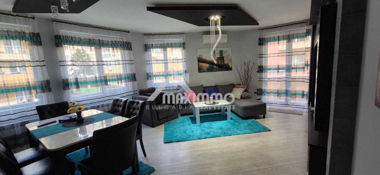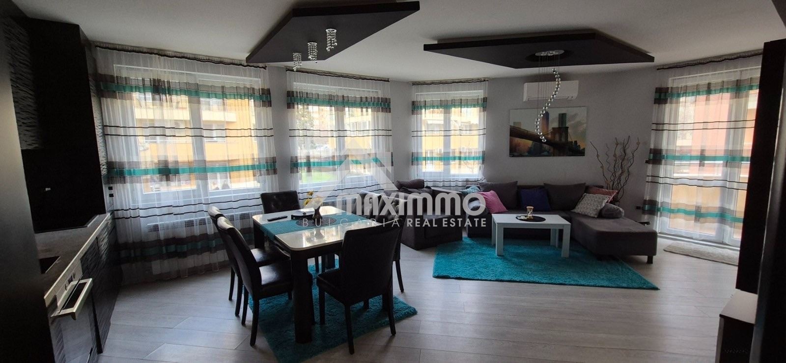Състояние: Имотът е в отлично състояние и е напълно обзаведен и оборудван с всичко нужно за домакинството. Парно отопление и климатик!
