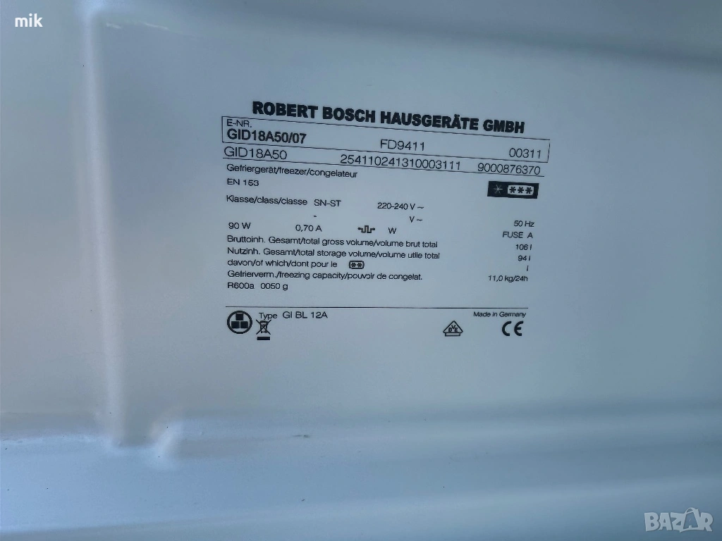 Малък фризер с 4 чекмеджета Bosch. Модел за пълно вграждане. Без проблем може да се ползва и като свободностоящ. Фризерът е като чисто нов! Закупен от Германия, произведен за немския пазар! Дезинфекциран и готов за употреба.