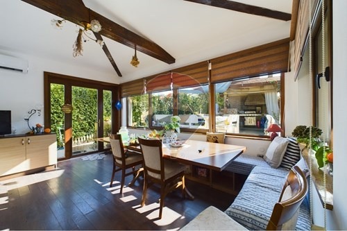 Ексклузивно от RE/MAX. Предлагаме за продажба уникална двуетажна къща, истински оазис на спокойствието в м-ст Боровец Север. С разгъната площ от 193 кв.м и двор от 600 кв.м, този имот комбинира изисканост и уют. Първият етаж предлага просторна всекидневна с камина и очарователна веранда за вечери под звездите. Градината е магнетична уникат от редки рози, ароматни билки, овошки и зеленчуци. Панорамната гледка към града и морето ще ви остави без дъх, превръщайки дома в мечтано убежище за спокойствие и хармония.