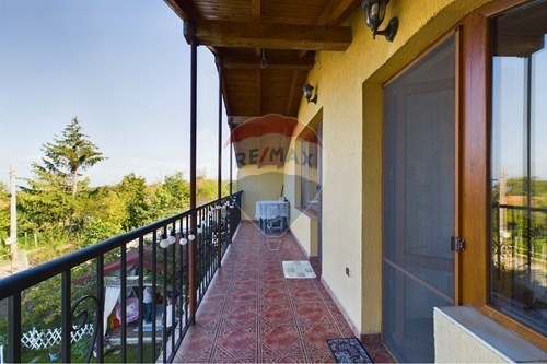 Къщата е със следно разпределение: На първи етаж: - голяма и слънчева дневна, кухненски кът- напълно обзаведен, широка закрита веранда, превърната в място за хранене. На етажа са разположени и спалня с голям функционален гардероб, килер и камина, която отоплява и двата етажа, баня и тоалетна отделно. Вътрешни стълби водят към втори етаж, където са разположени спалня с двойно легло и голям вграден гардероб, мечта на всяка домакиня; втора спалня напълно обзаведена, с излаз на тераса, от която се разкрива невероятна гледка към града и морето; трета спалня с излаз към същата тераса и с още едно балконче тераската на Жулиета ; баня и тоалетна в две отделни помещения. Къщата се предлага във вида от снимките. Отоплението и охлаждането е решено посредством камината и два климатика. Инсталирани са СОТ система и видеонаблюдение. От терасата ще се наслаждавате на нескриваема панорама. Дворното място към къщата е равно, озеленено, с много овошки, зеленчукова градина, разнообразни билки, цветна градина с едни от най- редките рози, както и кът за отдих. В двора е обособена зона за барбекю оборудвано с всичко необходимо, кът за домашен любимец - пазач. Има външна чешма, изградена поливна система за целия двор и капково поливане за растенията.