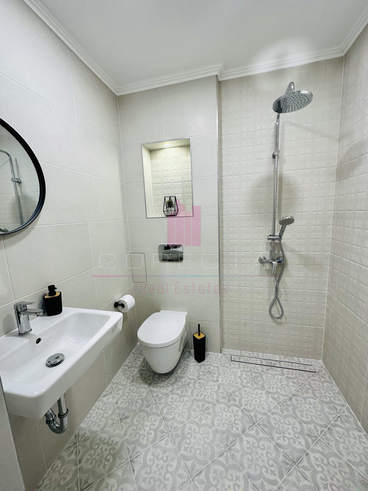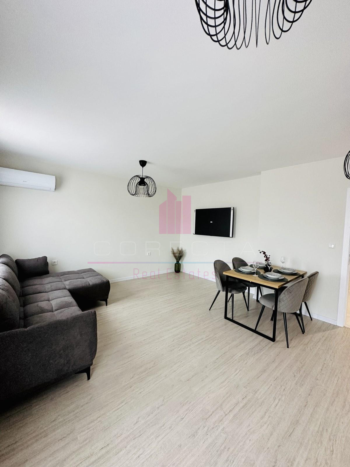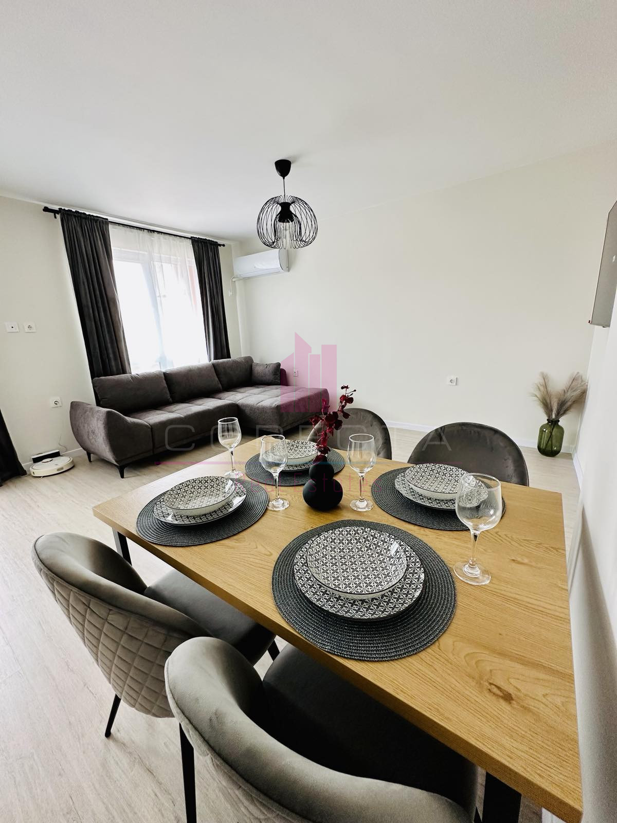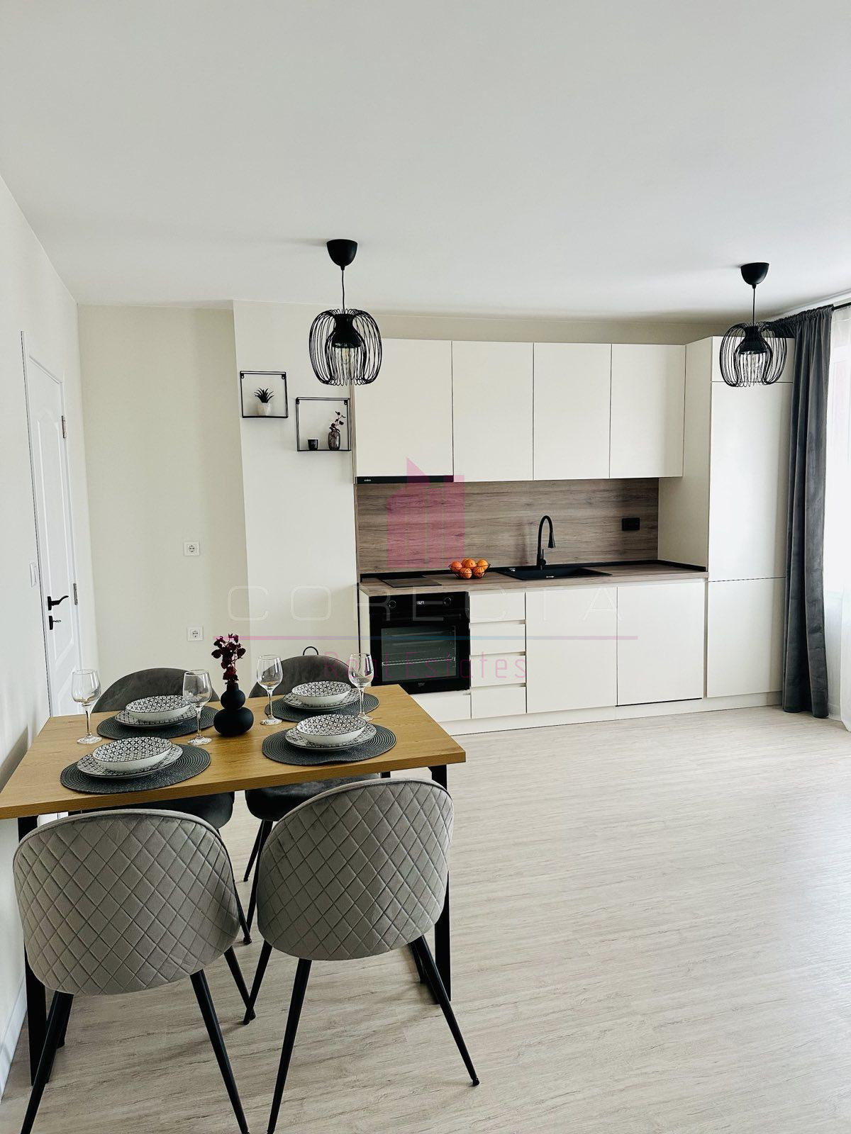 КОРЕКТА ЕСТЕЙТ Ви предлага ЛУКСОЗНО обзаведен, просторен апартамент в центъра на гр.Русе. Жилището е разположено в новопостроена монолитна кооперация с асансьор и се състои от просторен дневен тракт с обособена кухня, трапезария и дневна зона, спалня, коридор, баня с тоалетна, голяма открита тераса и перално помещение. Кухнята включва вградена фурна висок клас, хладилник, аспиратор, стъклокерамични котлони, съдомиялна, пералня със сушилня. Отоплението е на електричество, като в двете помещения са монтирани инверторни климатици.