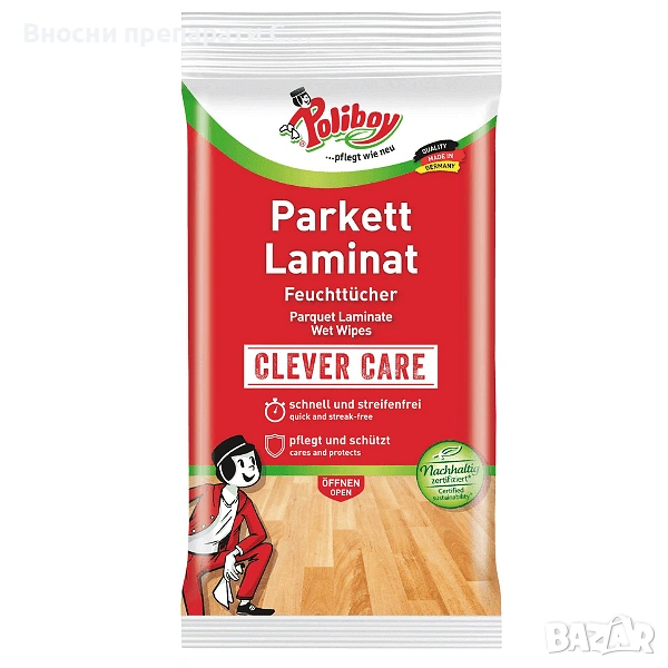 Poliboy влажни кърпи за почистване на паркет и ламинат, 15 бр