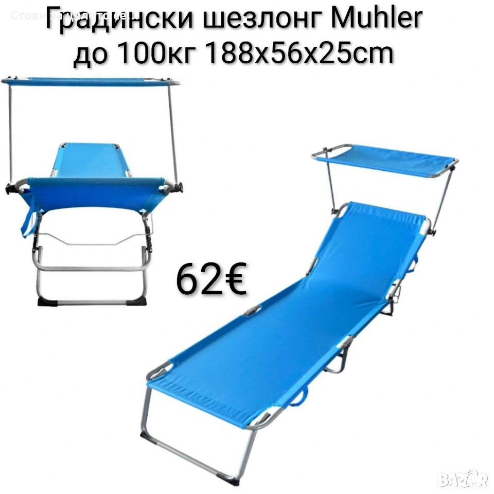 Градински шезлонг Muhler, 188x56x25cm до 100кг → Обява 53704223