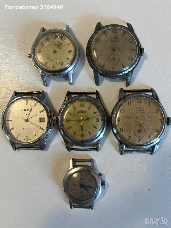 Винтидж механични часовници – швейцарски и съветски модели. Следи от употреба, подходящи за колекция или реставрация. Цена 126 евро за всички.