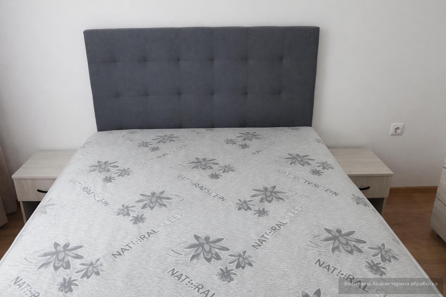Функционалното разпределение включва коридор, хол с кухненски бокс, спалня и баня с тоалетна. Апартаментът е напълно обзаведен и се отоплява на ток. Месечният наем е 650 EUR, подходящ за двойка или индивидуално настаняване.