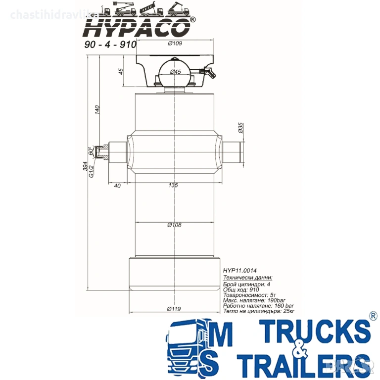 Хидравличен цилиндър HYPACO 90-4-910 HYP11.0014 → Обява 53704774