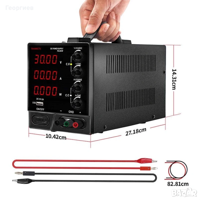 • Прецизен контрол: Регулируемо напрежение от 0 до 30V и ток от 0 до 10A.