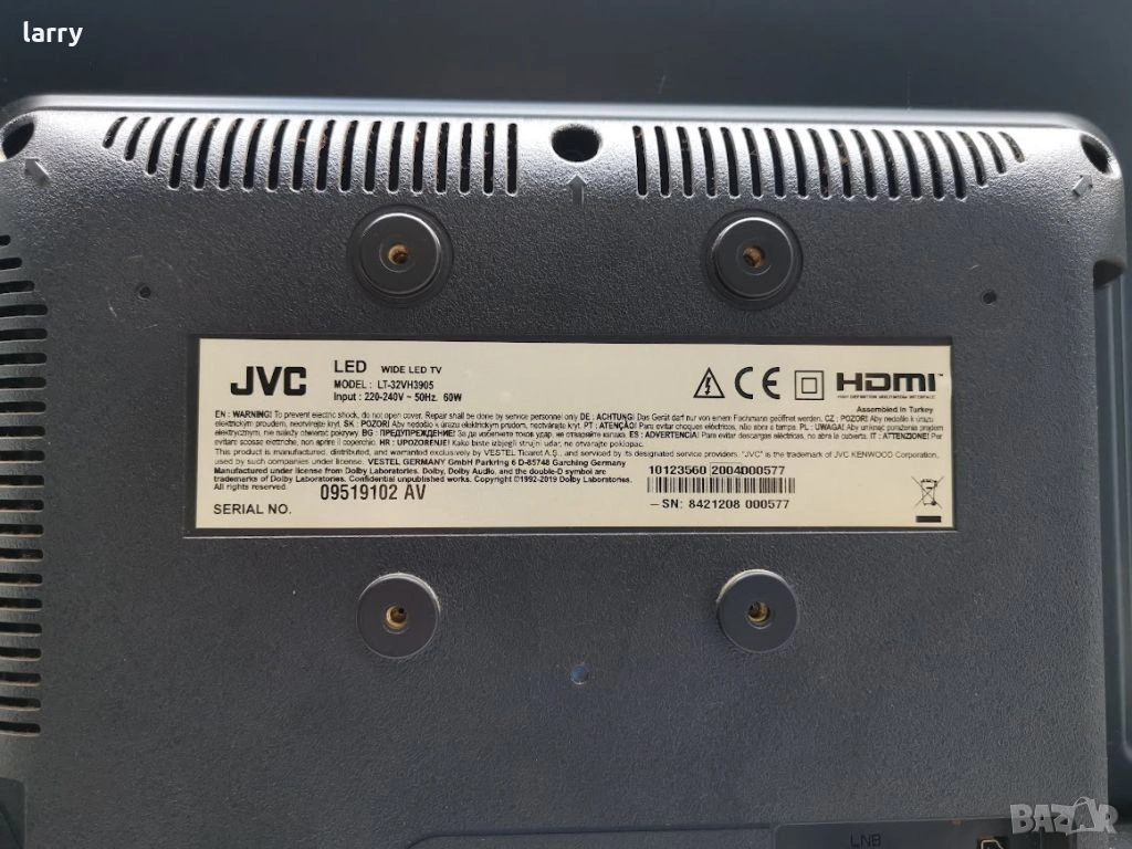 Телевизор JVC LT-32VH3905 на части, снимка 1 - Части и Платки - 53705113 Телевизор JVC LT-32VH3905 на части, снимка 2 - Части и Платки - 53705113 Телевизор JVC LT-32VH3905 на части, снимка 3 - Части и Платки - 53705113 Телевизор JVC LT-32VH3905 на части, снимка 4 - Части и Платки - 53705113 Телевизор JVC LT-32VH3905 на части, снимка 5 - Части и Платки - 53705113 1/5