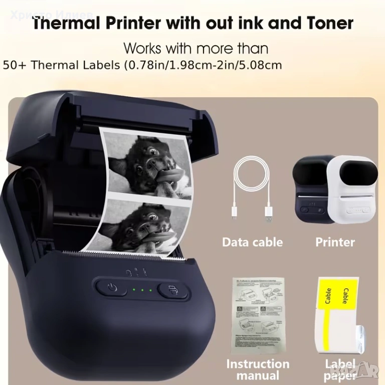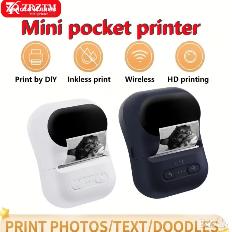 - ✔С помощта на мини принтер за стикери можете да отпечатвате черно-бели снимки, картини, учебни бележки, списъци със задачи, списъци за пазаруване и т.н., като напълно отговаряте на повечето от вашите работни и житейски нужди.