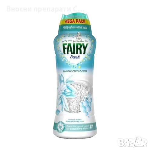 Fairy In-Wash Scent Booster представлява концентрирани ароматни перли, които осигуряват меко и трайно ухание. Произведени от марката № 1 за чувствителна кожа, с одобрение от Skin Health Alliance. Подходящи за всякакви материи и пране, осигурявайки свежест, която остава дълго в гардероба.
