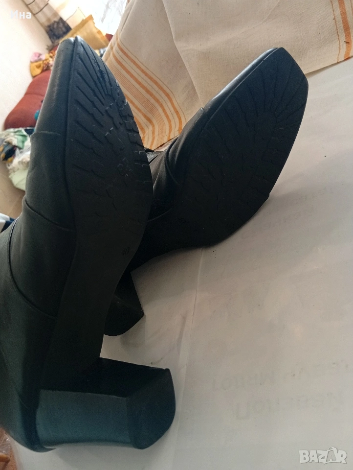 Черни ботушки на JANET D естествена кожа, с цип от вътрешната страна, стелки 26.5 см, отлично състояние без забележкия ток 7 см, подметки с релеф,