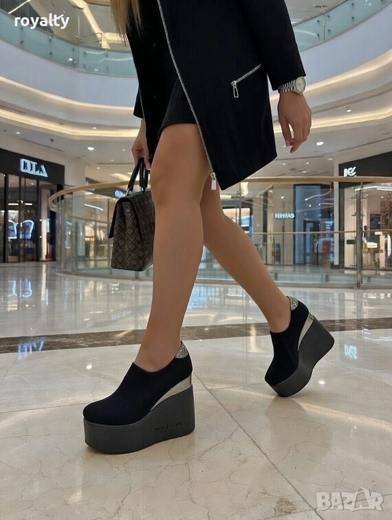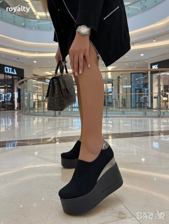 Обувки на платформа - черен велур и лак → Обява 53705401