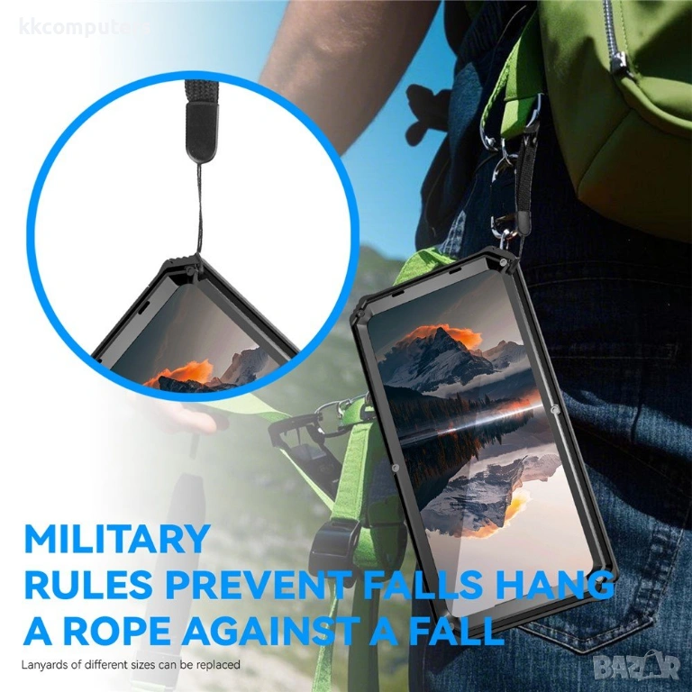 Моделът предлага многослойна защита срещу удари, прах и вода. Подсилената структура абсорбира сътресенията при изпускане и предпазва устройството от механични повреди.