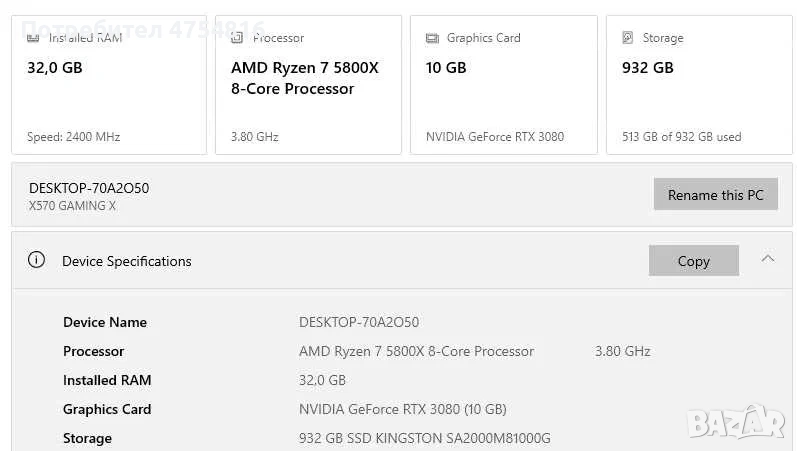 Гейминг компютър + Монитор - RTX 3080 | Ryzen 7 | 32GB RAM | 1TB NVMe