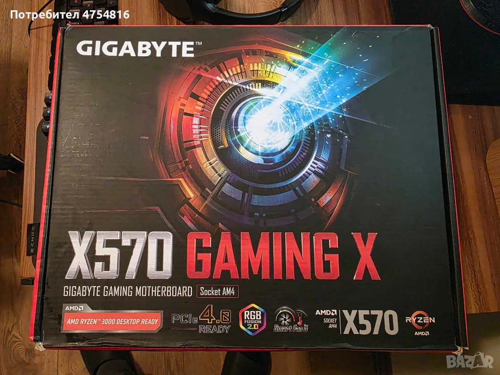 Дънна платка: Gigabyte X570 Gaming X – стабилна платка с добра поддръжка за процесора и модерни интерфейси.