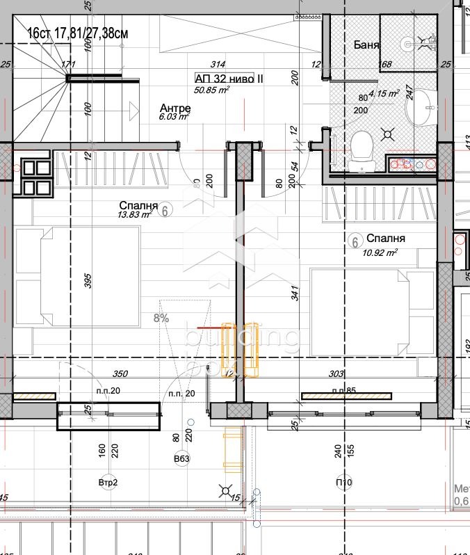 2. Второ ниво - Две спални, баня с тоалетна и тераса.