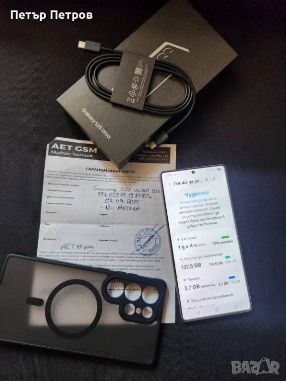 Samsung Galaxy S25 Ultra 12GB RAM 256GB TitaniumBlack ГАРАНЦИЯ! ПЪЛЕН КОМПЛЕКТ! → Обява 53705708