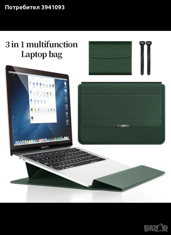 2 в 1 Калъф за лаптоп с функция стойка за лаптоп + чанта за кабел и мишка 15 - 16 инча → Обява 53705781