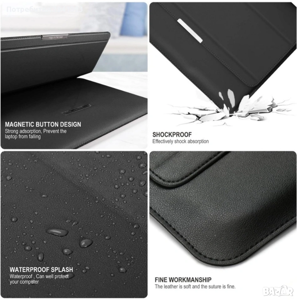 -Висококачествена външна част от полиуретанова кожа и мека вътрешност от филц ще предпазят вашия ценен компютър от случайни драскотини.
