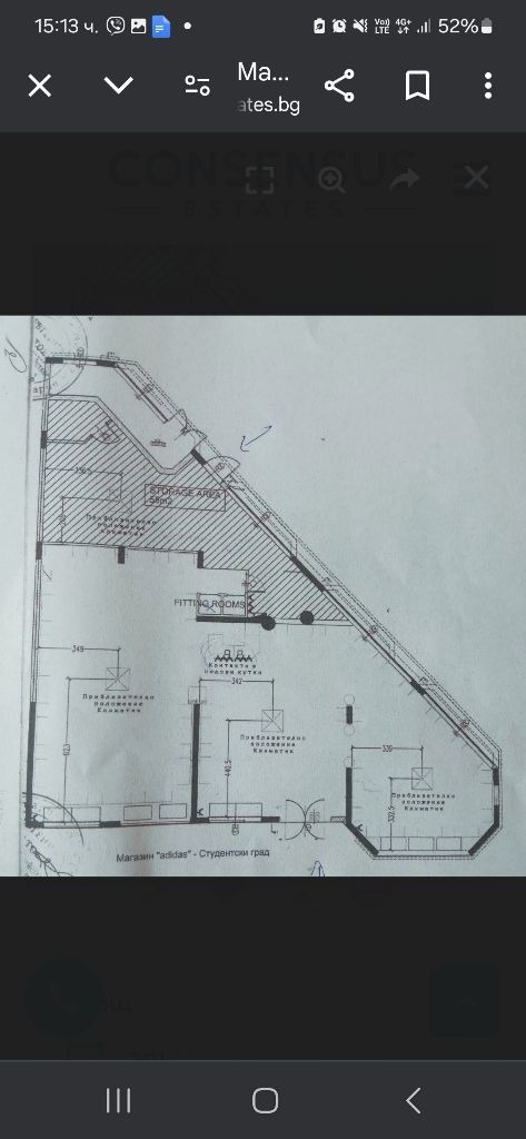 Чистата площ на магазина е 300 кв.м. а цената за наем е 3499 евро без ДДС.