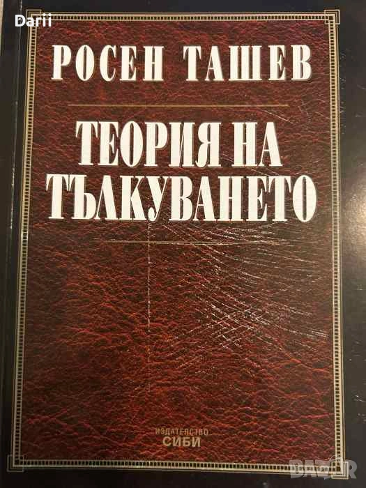Тълкуването в правото е интелектуална и практическа дейност в процеса на правоприлагане. Теорията на тълкуването се занимава с тълкувателните техники и доктриналните обяснения за ролята им в юридическата дейност. Книгата на проф. Росен Ташев изследва развитието на модерната теория на тълкуването от 30-те години на XIX в. насетне. Самостоятелно са разгледани континенталната и прецедентната тълкувателна теория, концепциите на Х. Келзен и Х. Харт, херменевтичната традиция, както и българската правна теория на тълкуването