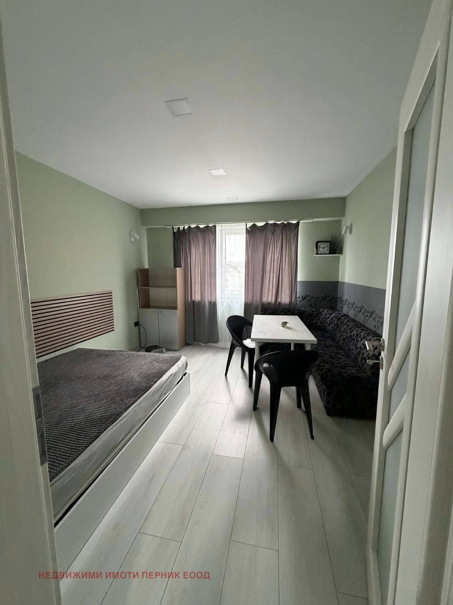 Апартаментът е след ремонт, светъл и функционално организиран. Пространството е практично разпределено обособена спална зона, кът за хранене и оборудван кухненски бокс.