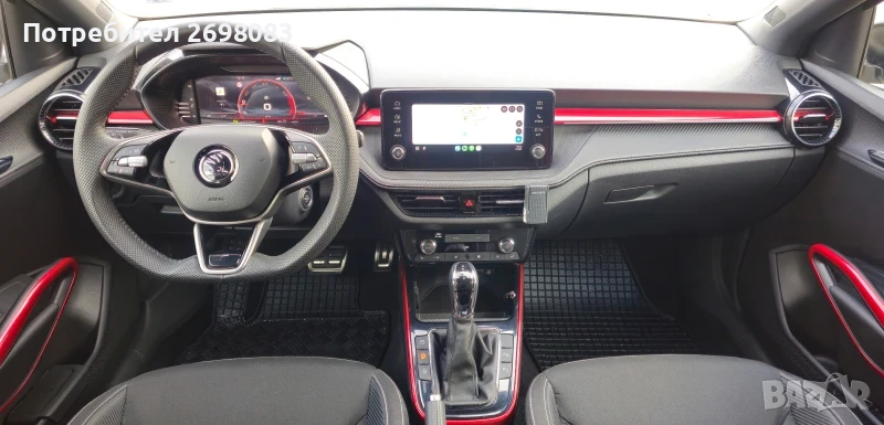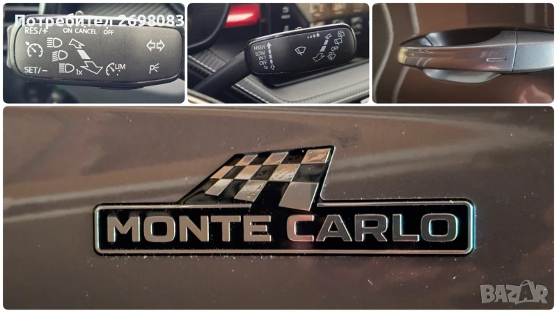 1. 5TSI, 150HP, 7DSG Единствен собственик, Мonte Carlo Plus - последен пакет с екстри. Закупена от Еуратек - официален вносител на Шкода в България. * Airbag за водача и пътника до него * Въздушни възглавници тип завеса * Предни и задни странични въздушни възглавници * Въздушна възглавница за коленете на водача * Информационна система 8" с цветен тъч-скрийн дисплей с Apple Car Play и Android Auto * Предни и задни електроуправляеми стъкла с комфорт функция * Защита за пешеходци в предната броня * LSS - Lane Support System и RED - Road Edge Detection * Предни и задни дискови спирачки * Front Assist с автоматични спирачки * Trafic sign recogn. - система разпознаваща пътни знаци * Rest assistant - система разпознаваща умора във водача * ESC, включващо системите ABS, MSR, ASR, EDS и HBA * XDS - електрическо заключване на диференциала * TPM - система за следене на налягането в гумите * HHC - система против потегляне по наклон * Start-Stop система * Двузонов климатроник с електронно регулиране * Темпомат с ограничител на скоростта * Сензор за дъжд * Основни фарове с Bi-LED светлини, LED дневни светлини * Електрически странични огледала с подгряване и сгъване * LED фарове за мъгла с функция CORNER * LIGHT ASSIST HIGH - автоматично превключване на къси/дълги светлини, автоматично включване на светлините * Затъмнени 75% задно и задни странични стъкла * Регулиране по височина на двете предни седалки * Регулируеми лумбални опори в предните седалки * KESSY - безключово отключване и заключване на автомобила, палене и гасене на двигателя * Избор на режим за шофиране Comfort, Normal, Sport, Individual * Ахроматично огледало за обратно виждане * Лети алуминиеви джанти 6, 0J x 16" * Спортни седалки с тапицерия от текстил - Monte Carlo * Инструментално табло със специфичен дизайн * LED осветление на централната конзола * Дигитално инструментално табло - виртуален кокпит с 10" дислей и избор на различни режими * LED амбиентно осветление в бяло/червено * Черни спортни елементи в предната и задната брони * LED осветление на дръжките на вратите отвътре * Хромирани капачки на педалите * Подгряване на волана * Избор на режим на шофиране * Интелигентен самопаркиращ асистент роботизирано паркиране на автомобила успоредно и перпендикулярно * Преден и заден парктроник * Камера за паркиране за заден ход с пръскачка * Подгряване на предните седалки * Подгряване на дюзите на стъкломиячната система * Датчик за нивото на течността на стъкломиячната система * 4 високоговорителя отпред + 2 високоговорителя отзад включително Skoda Surround * Универсална GSM подготовка с Bluetooth с безжично индуктивно зареждане * USB type-C за зареждане и пренос на данни с увеличен капацитет за зареждане * USB в огледалото за обратно виждане * 2бр. USB за задни седалки * Подлакътник за задни седалки + допълнително оборудване