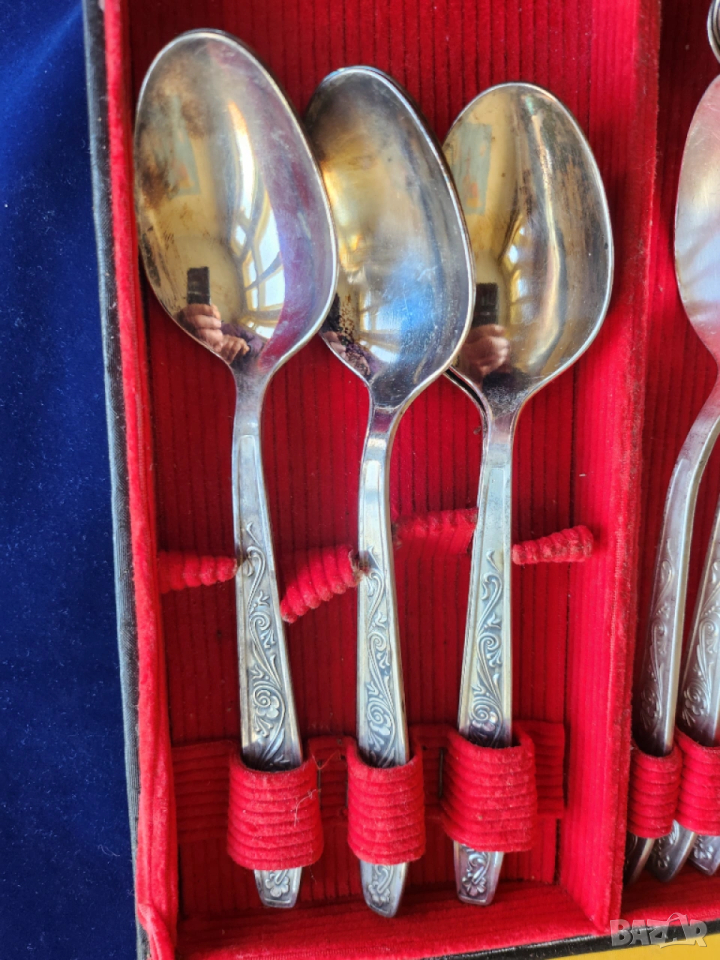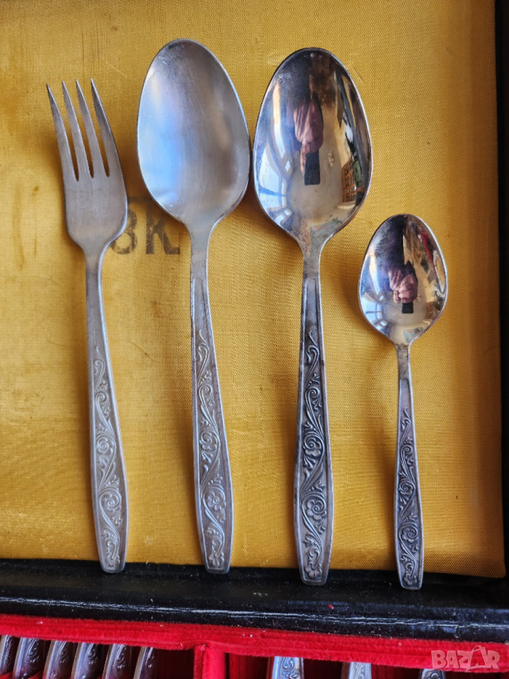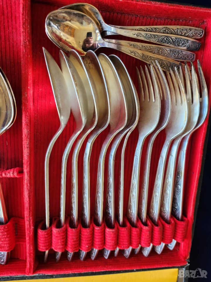 прибори от мелхиор, дълбоко послебрени, тежки, мод.Флора, СССР, 24 бр.
