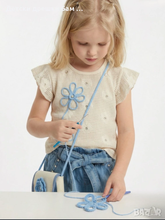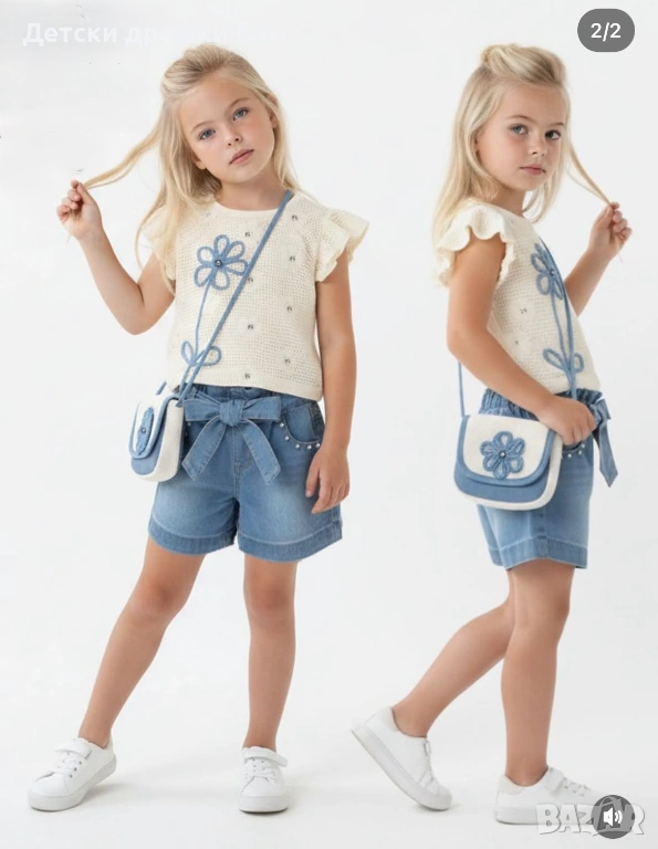 Летен комплект за момиче с дънкови панталонки и чанта с цвете