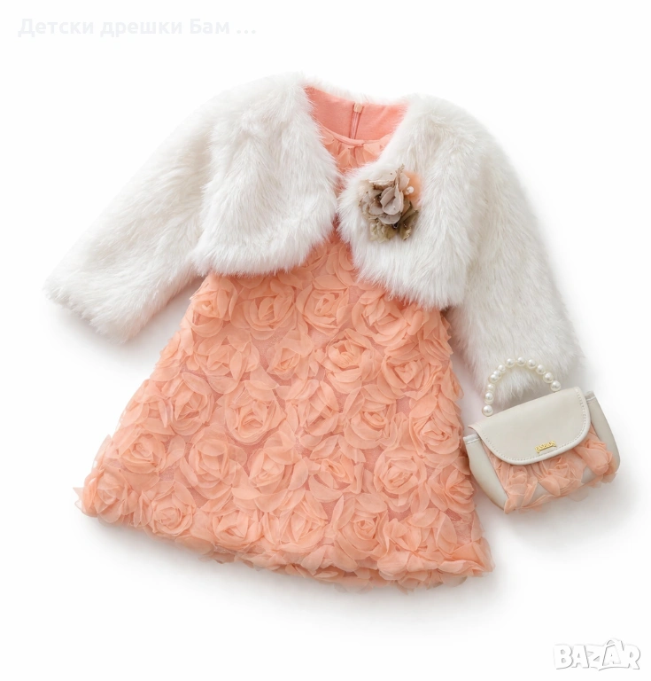 Луксозна официална рокля за момиче с 3D цветя, болеро и чантичка → Обява 53706478