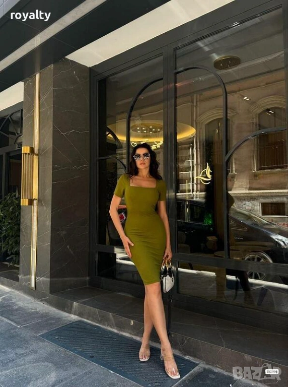 Миди рокля с квадратно деколте – елегантен базов модел